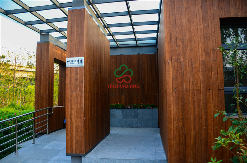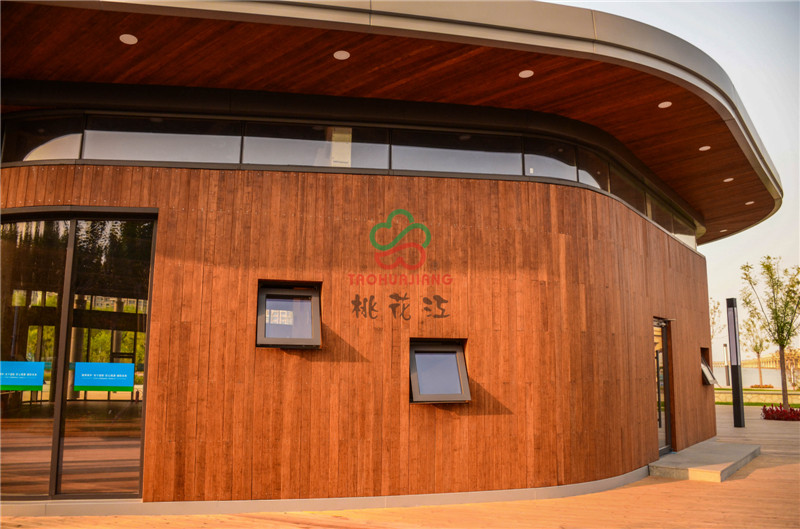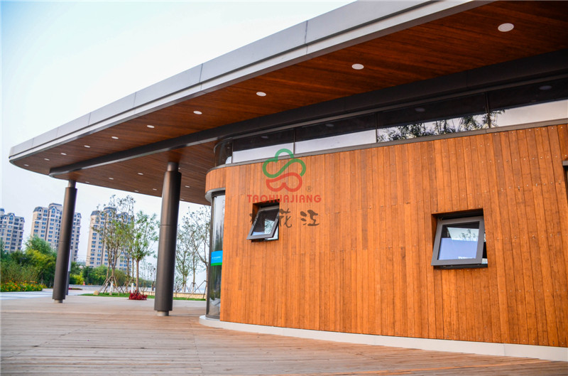 該公園東側(cè)為海濱高速公路,西側(cè)為濱海旅游區(qū)辦公區(qū)域,北臨海博路,南至規(guī)劃海旭道,是從城市空間到海邊的過(guò)渡型景觀。項(xiàng)目的建設(shè)是在尊重歷史和現(xiàn)實(shí)條件基礎(chǔ)上,結(jié)合先進(jìn)的生態(tài)建設(shè)理念,大面積運(yùn)用了桃花江竹材科技的環(huán)保竹材作為主體裝飾材料,公園內(nèi)的主體建筑,采用桃花江竹材科技的全竹裝飾來(lái)裝潢,高炭防腐竹材做外墻和吊頂裝飾,色澤明亮,渾然一體,既現(xiàn)代又傳統(tǒng)的竹材裝飾風(fēng)格為公園營(yíng)造自然、郊野景觀氛圍,為市民提供一個(gè)全新的休閑娛樂(lè)場(chǎng)所。