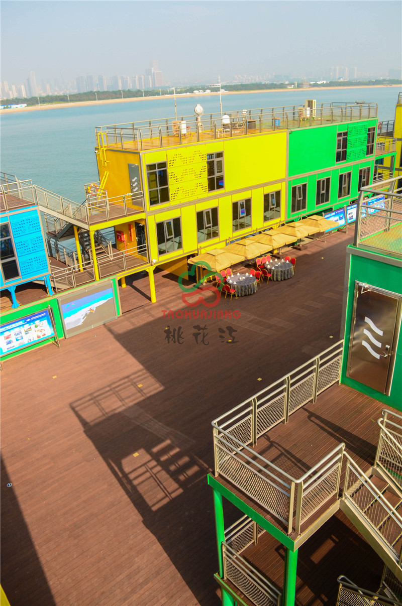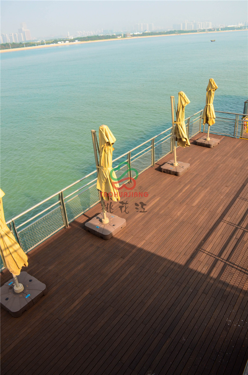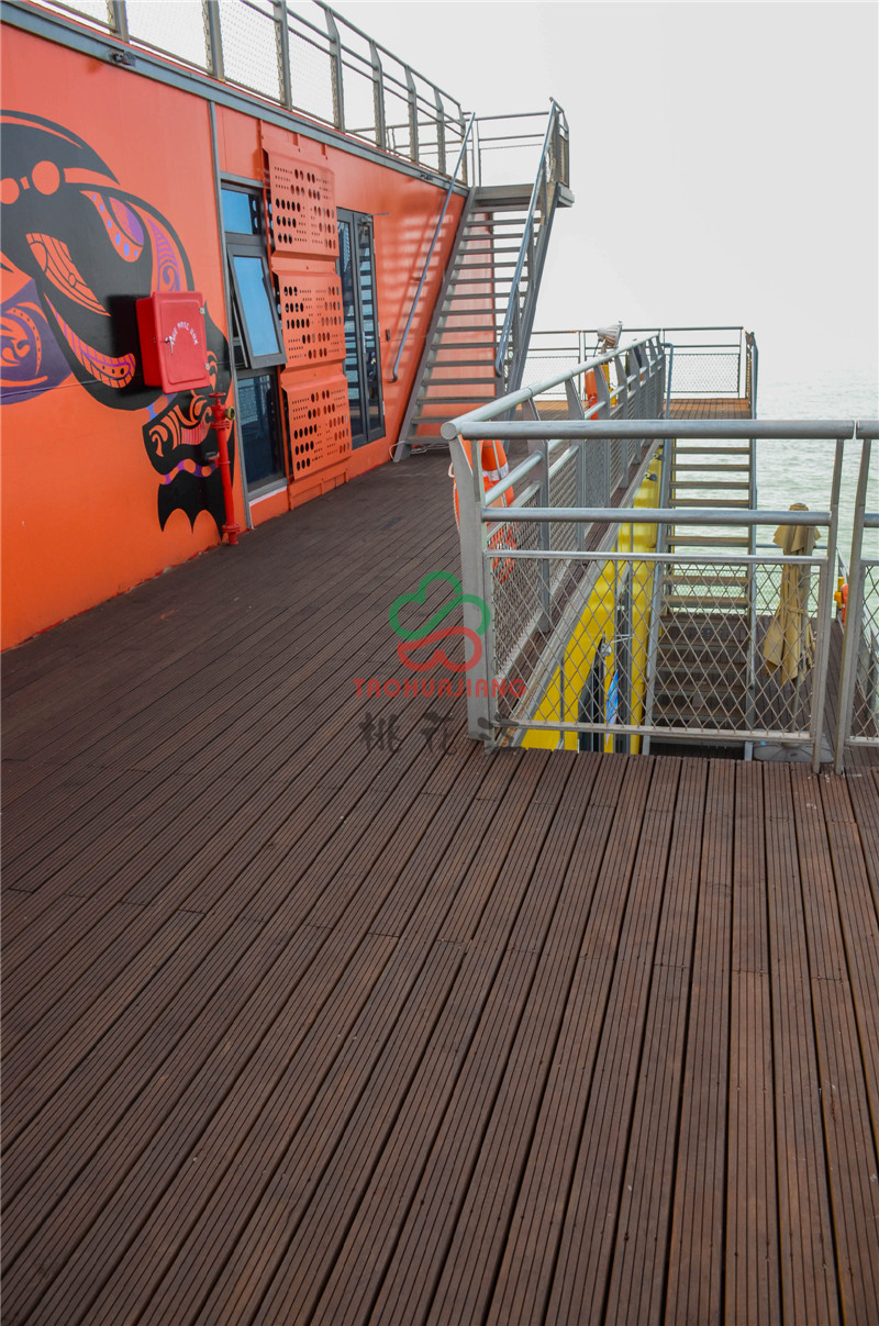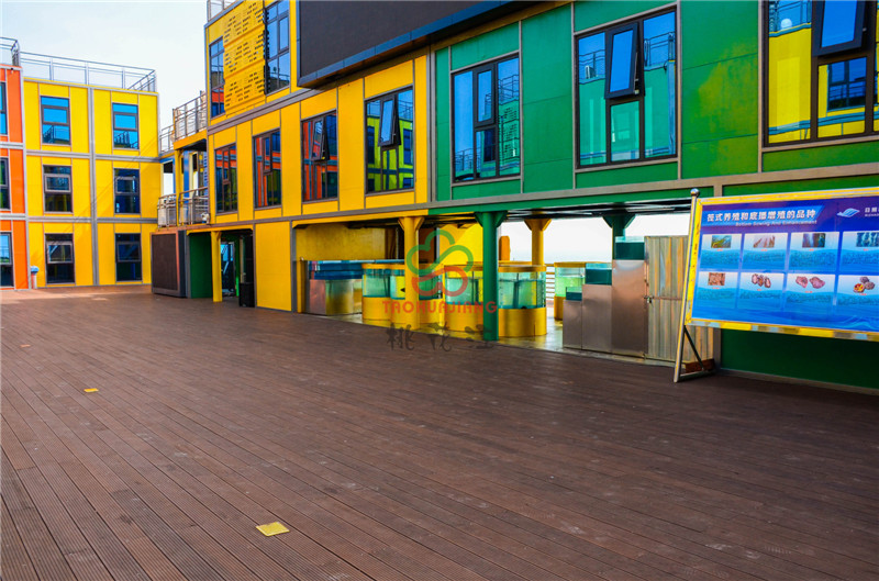 海上牧歌旅游休閑度假平臺是按照海上浮島理念設(shè)計,以海洋文化、藍色暢想為主題,通過游、娛、食、宿、賞、釣、放、賽等多種形式,打造集休閑觀光、競技垂釣、海洋采摘、食宿賞娛功能于一體的海上休閑旅游體驗平臺。該項目的甲板上全部鋪設(shè)桃花江竹材科技的戶外防腐竹地板,桃花江的戶外防腐竹地板以其優(yōu)異的環(huán)保性、耐候性和穩(wěn)定性,即使在日曬雨淋的甲板上也不動聲色,穩(wěn)定性強,甲板上同時可容納上千人,深咖色的地板與五彩斑斕的建筑形成一幅絢麗的風(fēng)景,是人們休閑娛樂觀海的不錯所在。
